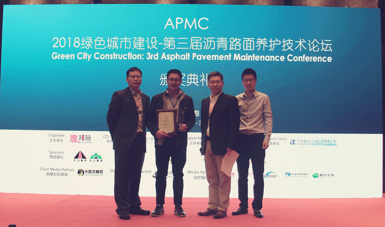 在本屆論壇同期舉行的“年度瀝青行業(yè)頒獎典禮”上,組委會對瀝青養(yǎng)護和綠色城市建設(shè)行業(yè)2017-2018年度,在不同領(lǐng)域內(nèi)具備杰出表現(xiàn)、用于探索實踐、并具備創(chuàng)新精神與能力的企業(yè)先行者進行表彰。鐵拓機械憑借環(huán)保型瀝青攪拌及再生設(shè)備的技術(shù)領(lǐng)先優(yōu)勢和卓越品質(zhì),經(jīng)組委會專家評定,最終榮獲“2017-2018年度杰出瀝青路面設(shè)備生產(chǎn)商”獎項。