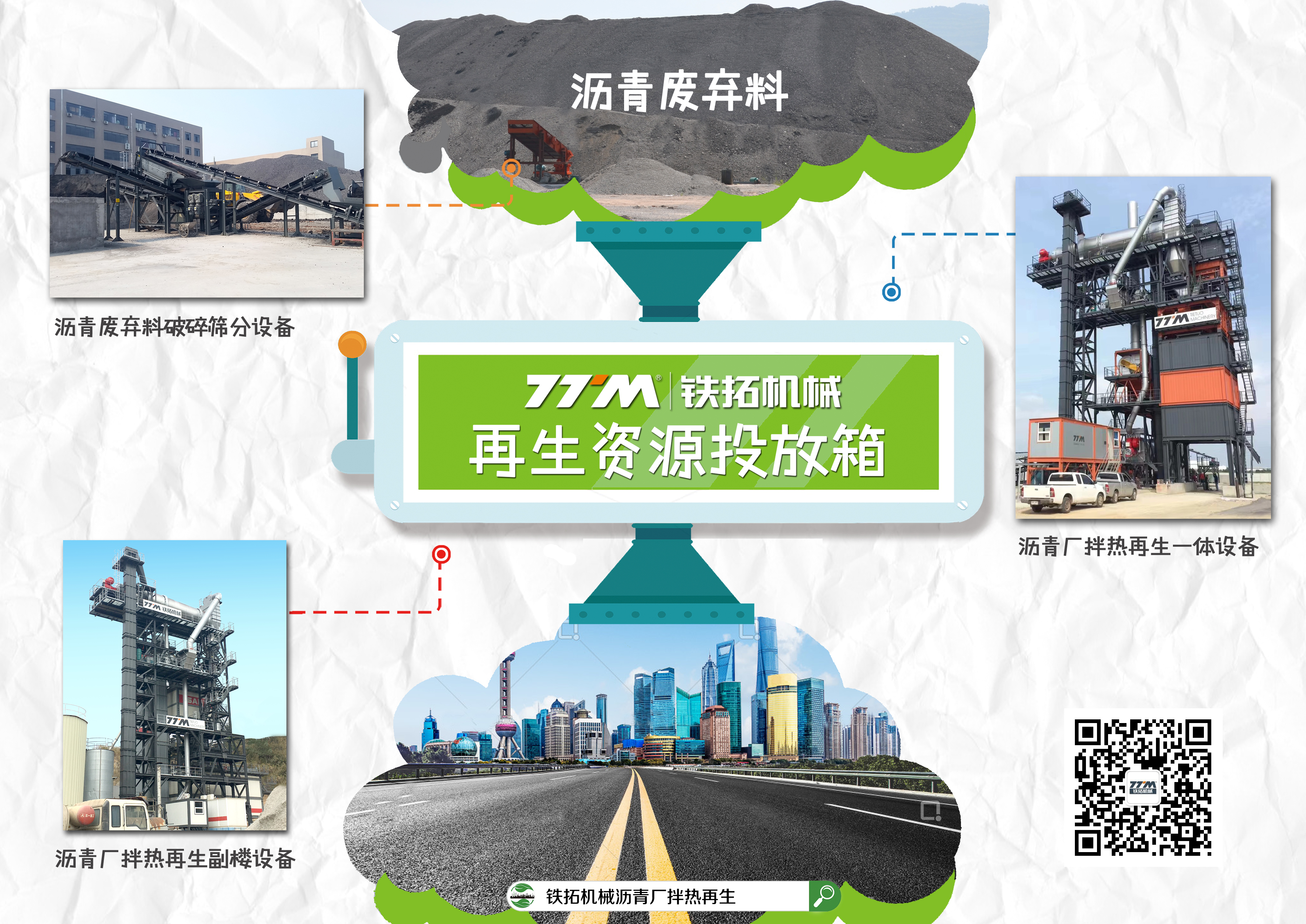 鐵拓機械作為中國瀝青混合料攪拌/再生設(shè)備引領(lǐng)企業(yè),不僅僅是在世界環(huán)境日期間,任何時候都把保護生態(tài)環(huán)境放在第一位。 在設(shè)備研發(fā)初期,鐵拓機械設(shè)備研發(fā)工程師結(jié)合中國國情,圍繞瀝青廢棄料循環(huán)利用、大氣污染、噪音污染以及改善設(shè)備使用者現(xiàn)場工作環(huán)境等諸多問題,進行研發(fā)設(shè)計和制造,不同用途的環(huán)保技術(shù)和設(shè)備就此應(yīng)運而生,完美解決諸多環(huán)保問題。